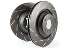 EBC Brakes USR slotted rotors feature a narrow slow to eliminate wind noise heard when using most sport rotors. Black Thermic coating leaves a nice finish and protects the rotors against corrosion.