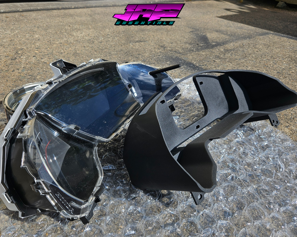 This bolt-in cluster mount replaces your out dated original cluster. This mount allows for a clean and simple installation of your new aftermarket display with simply only screwing 3 bolts to secure the JAP Essentials mount to your personal digital display screen. Designed with precision to fit directly into the OEM mounting locations with no modifications required!