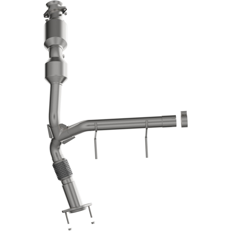 Keep the check engine light off with MagnaFlow OEM Grade Federal/EPA Compliant Direct-Fit Catalytic Converter 280268. With features including free-flowing mandrel-bent tubing and highly corrosion resistant stainless steel construction, easily install this converter yourself using the proper tools, no cutting or welding required. MagnaFlow's state-of-the-art metrology department uses the latest 3D scanning systems during research and development, so you can be confident that your new part will fit and function like the original equipment. By replicating the OE design, the single laser fusion weld greatly reduces the possibility of a leak, and our compact, low-mass design also allows for greater thermal efficiency. This Direct-Fit Catalytic Converter is designed to fit the 2021-2022 Ford F-150 3.5L. MagnaFlow 280268 includes (4) Nuts, (1) Band Clamp, (2) Bolts and interchanges with OE parts ML3Z-5E212-P. This replacement part is designed to meet or exceed Federal emissions requirements set forth by the EPA, complying with legal standards for OBDII Federally registered vehicles with California or Federal/EPA Emission systems.