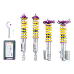 Designed to maximize the performance on vehicles with DOT-R and other ultra high-performance tire setups. KW V3 Clubsport coilovers are the ideal choice for double-duty street cars, use at HPDE's(high performance drivers education), time attack or time trials, and club level racing. The Clubsport setup was specially designed on the Nordschleife and the continuous adjustable ride height allows for fine corner weight or making setup changes. The TVR-A and TVC-A valve technology -provide an unmatched level of separately adjustable damping for the rebound and compression enabling a customized set up appropriate for the vehicle's modifications such as weight, tire characteristics, and other various conditions. The KW V3 Clubsport INOX-LINE coilover kit is the ideal tool for performance-oriented drivers and experienced tuning enthusiasts who place a strong emphasis on the overall performance of their suspension. The KW V3 Clubsport features patented TVR-A and TVC-A technology -hat provides separately adjustable rebound and compression damping. The extensive Adjustment -angle of the independently configurable rebound and compression make it easy to directly influence the steering behavior, directional stability, grip and handling characteristics for confident and repeatable results at the limit of driving dynamics.