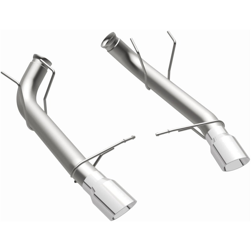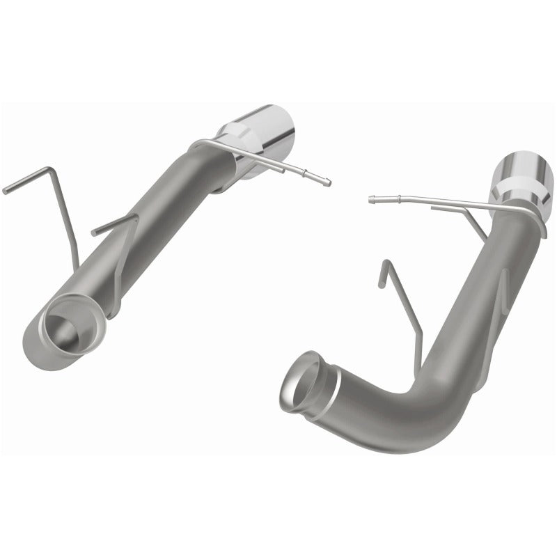 The MagnaFlow 2011-2012 Ford Mustang Race Series Axle-Back Performance Exhaust System 15594 doesn't leave any performance on the table with a race-ready, light weight, dyno-proven design ready to help your 5.0L, 5.4L 2011-2012 Ford Mustang take on any pretenders, whether on the track or the street. Exhaust kit 15594 is engineered to produce our powerful, resonant signature exhaust note at Very Aggressive exterior and Aggressive interior sound levels with an axle-back layout that replaces your vehicle's exhaust components from near the rear axle on back. Please check to ensure compliance with local noise regulations. This Ford Mustang exhaust kit features fast-flowing mandrel bent 3in. diameter main piping that ends in a Dual Split Rear exit with 4in. Polished Welded-On Double Wall Angle Cut Folded Edge tips. Extensive 3D scanning during development and the use of advanced CNC precision robotic manufacturing techniques ensures that 15594's direct-fit design fits so perfectly that you can easily install the system yourself. The durable, corrosion resistant stainless steel construction of exhaust system 15594 is backed by MagnaFlow's limited lifetime warranty.