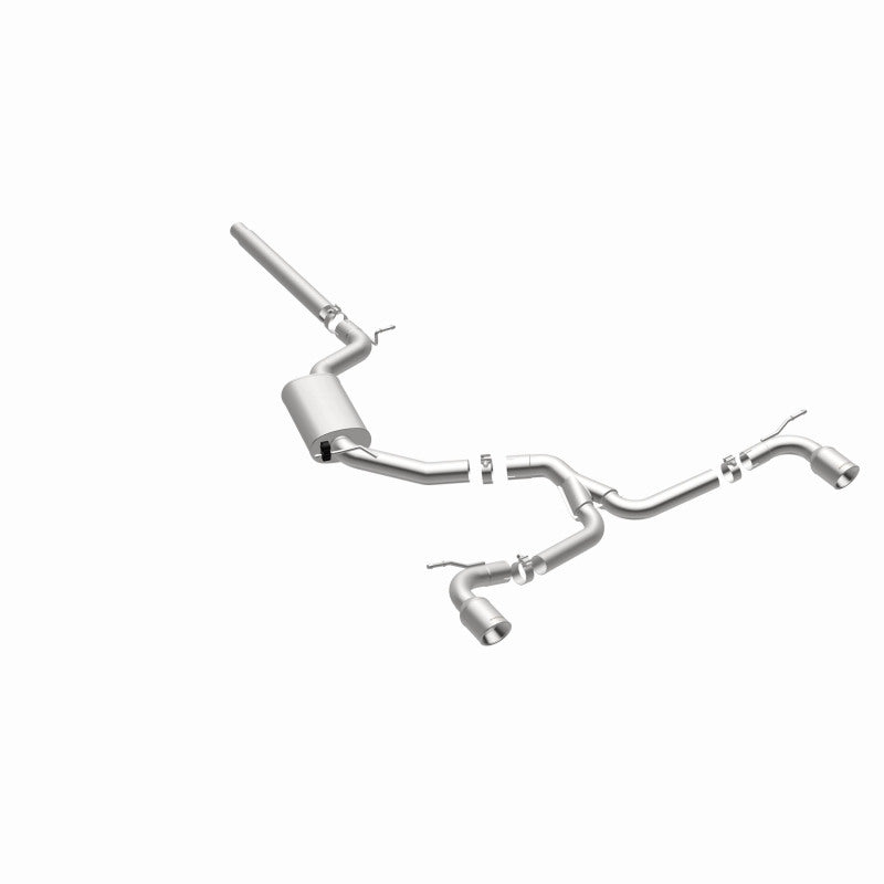 The MagnaFlow 2015-2017 Volkswagen GTI Touring Series Cat-Back Performance Exhaust System 15357 is the perfect partner for your 2.0L 2015-2017 Volkswagen GTI to take on a grand tour or a weekend cruise thanks to the powerful, resonant exhaust note and dyno-proven performance it brings to the table. This durable, corrosion resistant stainless steel exhaust kit is engineered to conquer the miles with ease while enhancing your driving experience with Moderate exterior and Mild interior sound levels generated through its fast-flowing, mandrel bent 3in. main piping and 1 Straight-Through muffler that terminate in a Dual Split Rear exit with 4in. Polished Welded-On Double Wall Angle Cut Rolled Edge tips. 15357 features a cat-back layout design to replace your import's stock exhaust components from the catalytic converter on back. This Volkswagen GTI exhaust system is compatible with 2015-2017 engines. The use of extensive 3D scans made during the development process has resulted in an easy-to-install, direct-fit design that fits your Volkswagen GTI like a glove. 15357 is produced using CNC precision robotic manufacturing techniques and is backed by MagnaFlow's limited lifetime construction warranty.