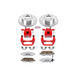 PowerStop is on a mission to deliver an easy way for any driver to upgrade their brakes - no matter where or how they use their vehicle. Our Z26 Street Warrior Brake Upgrade Kit with Powder Coated Calipers is recommended for high performance, high horsepower muscle and modified cars. This kit comes with everything you need for easy installation, including pads, rotors, calipers and stainless-steel hardware. The Drilled & Slotted rotors and Carbon-Fiber Ceramic pads combine to provide shorter stops under the most demanding conditions. The Powder Coated Calipers not only protect against corrosion, but also really stand out behind your wheels! This PowerStop Z26 Street Warrior Brake Upgrade Kit with Powder Coated Calipers is the affordable bolt-on upgrade that delivers more than just the braking power you need to rein in all those ponies. With our low-dust and low-noise formula, you'll spend less time cleaning those wheels and more time enjoying what matters most - the drive.