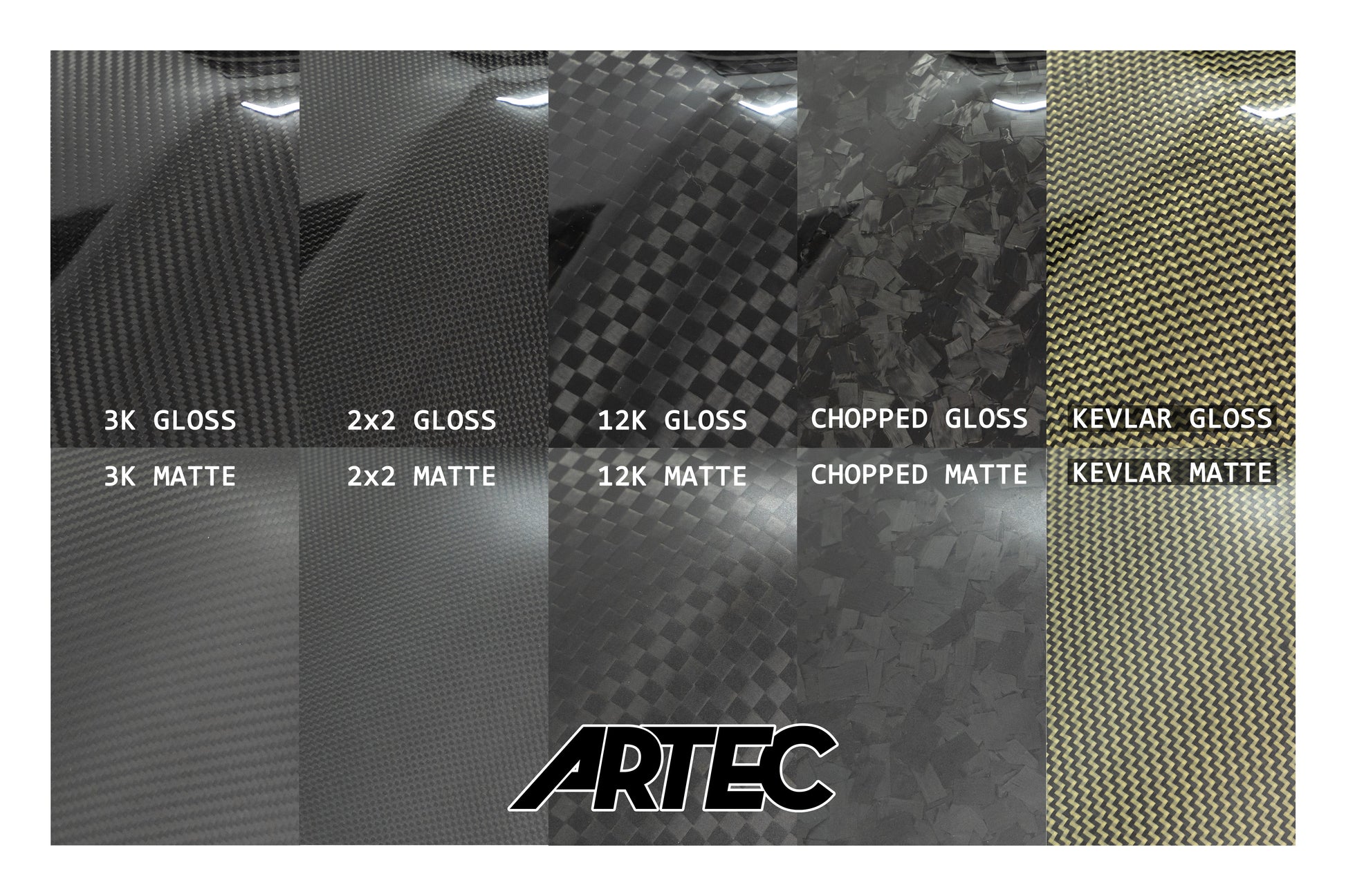 - Dry Carbon Fibre construction in a 3k weave with a gloss finish is our standard option.