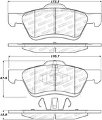 StopTech Street Select Brake Pads provide superior stopping power and reliability for passenger cars and light trucks. StopTech engineers have developed two application specific friction compounds; semi-metallic and ceramic that combine improved stopping performance while reducing noise and dust. StopTech Street Select Brake Pads are installation ready with High Performance shims attached to eliminate noise and vibration. OE style gas slots and chamfers optimize braking performance especially in repeat stop situations. Application specific hardware is included with each pad set ensuring full restoration of system performance and extended service life.