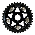 AEM Tru-Time Adjustable Camshaft Gears increase horsepower and torque without having to change the camshaft(s) and are must-have items for engines that are milled, forced induction, high compression and/or utilizing aftermarket competition cams. AEM Tru-Time cam gears enable users to match cam timing with their vehicle's tuning state by advancing or retarding the cam profile(s) in one-degree increments via true laser-etched markings. Precision-cut gear teeth ensure no premature wearing of the cam gear's belt surface and AEM's anodizing on the adjustable cam gear's teeth is lab-test proven as the hardest anodizing process on the market.