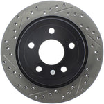 StopTech Drilled and Slotted Sport Rotors are 1-piece direct replacement brake discs for factory brake systems and stock calipers that look great behind your wheels – and offer significantly improved braking performance. The unique cross-drilling and slotting aids with heat and brake dust dispersal; prevents glazing of the pads; adds bite and improves wet and dry braking performance. Built to last; the black e-coating provides protection from corrosion and the high carbon metallurgy (in most applications) offers quieter operation; better crack resistance and increased performance.
