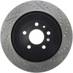 StopTech Drilled and Slotted Sport Rotors are 1-piece direct replacement brake discs for factory brake systems and stock calipers that look great behind your wheels – and offer significantly improved braking performance. The unique cross-drilling and slotting aids with heat and brake dust dispersal; prevents glazing of the pads; adds bite and improves wet and dry braking performance. Built to last; the black e-coating provides protection from corrosion and the high carbon metallurgy (in most applications) offers quieter operation; better crack resistance and increased performance.