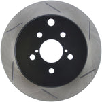 StopTech Slotted Sport Rotors are 1-piece direct replacement brake discs for factory brake systems and stock calipers that look great behind your wheels – and offer significantly improved braking performance. The unique slotting aids with heat and brake dust dispersal; prevents glazing of the pads; adds bite and improves wet and dry braking performance. Built to last; the black e-coating provides protection from corrosion and the high carbon metallurgy (in most applications) offers quieter operation; better crack resistance and increased performance.