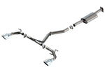 This 2.5" diameter into dual 2" tail pipes Borla(r) Cat-Back(tm) system is tuned for performance and sound for the 2.4L engine in the BRZ and GR86. Our S-Type sound level is designed to bring out the Subaru engine rumble and provides a moderate sound without any drone. This system features single 5" round bright chrome on T-304 stainless steel tips on each tail pipe, but is also available with black chrome on T-304 stainless steel tips. For ease of installation, this Cat-Back(tm) is a direct bolt on part and does not require cutting. Borla(r) Cat-Back(tm) and Axle-Back exhaust systems feature patented straight-through and multi-core technology designed to unleash hidden horsepower. Increased exhaust velocity adds power, driving excitement, fuel economy, and the distinctive Borla(r) Sound of Power respected by motoring enthusiasts everywhere. Like all Borla(r) exhaust products, each system is handmade in the USA by master craftspeople and features premium, high-quality T-304 austenitic stainless steel construction. Ultra-smooth mandrel bends ensure maximum flow & power, and precision computer numerical control (CNC) manufacturing ensures an accurate fit. Best of all it features a Million-Mile Warranty.