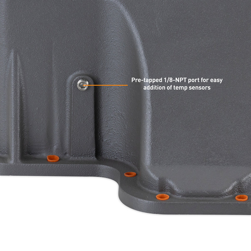 This Mishimoto Aluminum Transmission Pan is a direct-fit, high-performance upgrade for your 1989-2010 Ford 7.3L, 6.0L and 6.4L Powerstroke. Cast from high-quality aluminum and powder coated Gunmetal Gray, our transmission pan is a robust and long-lasting upgrade for your vehicle's transmission. With a sleek design and bottom ribs, this pan not only adds to the overall aesthetic of your truck but also provides improved cooling performance.----This transmission pan features internal baffles that reduce sloshing and enhance heat dissipation, resulting in smoother transmission performance. Our casting features a precision-machined sealing surface, ready to accept either a factory-style gasket or sealant of your choice (not included). Additionally, the Mishimoto 1989-2010 Ford Powerstroke Aluminum Transmission Pan adds an extra 6.6 quarts of ATF to help maintain optimal transmission operation.----Fed up with the frustration of trying to hold up a transmission pan with one hand while threading the fasteners in with the other? Mishimoto has you covered with pre-installed bolt retainers that hold the fasteners in the pan, allowing you to easily thread the bolts without dropping them on the ground, your head, or worse, that pan of nasty transmission fluid you just drained. Additionally, our pan comes equipped with a magnetic drain plug for easy draining and a 1/8-inch NPT port and plug for temperature sensors to make servicing your transmission and monitoring temperatures a breeze.----This direct-fit upgrade offers affordable durability and helps maintain smooth transmission operation, ensuring a long life for your transmission. Like all Mishimoto products, this transmission pan is backed by the Mishimoto Lifetime Warranty.