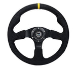 NRG Reinforced Steering Wheel (350mm/ 3in. Deep) Alcantara w/ Yellow Center w/ Black Stitch