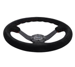 NRG Reinforced Steering Wheel (350mm / 3in. Deep) Blk Suede/Red BBall Stitch w/5mm Matte Blk Spokes