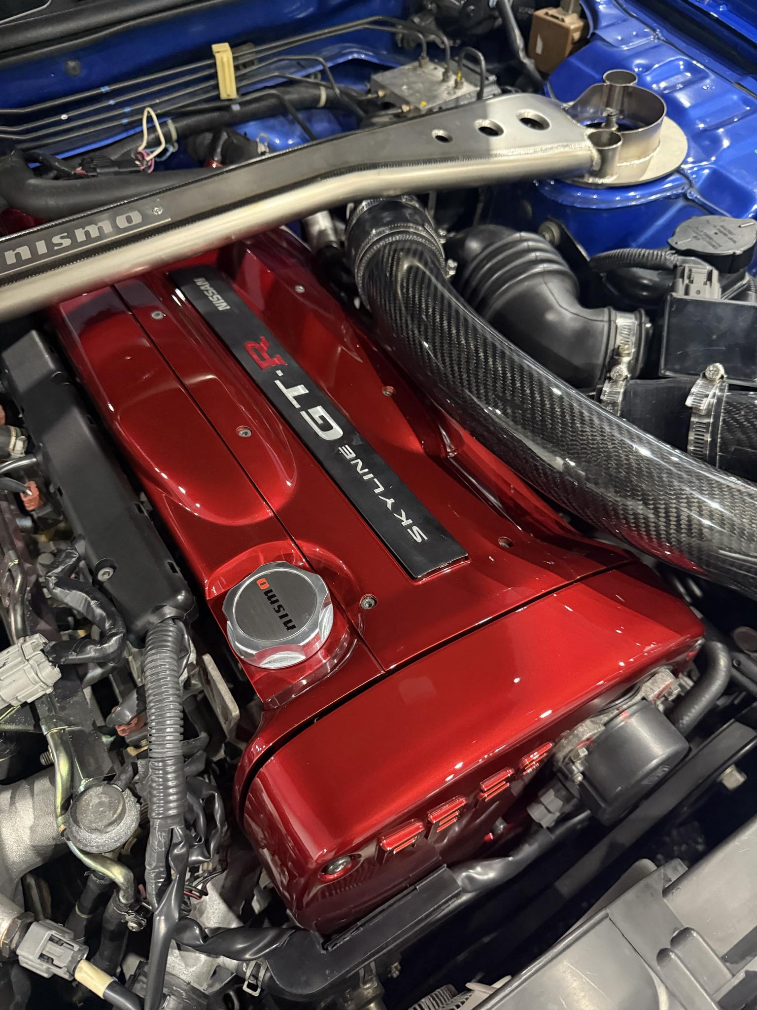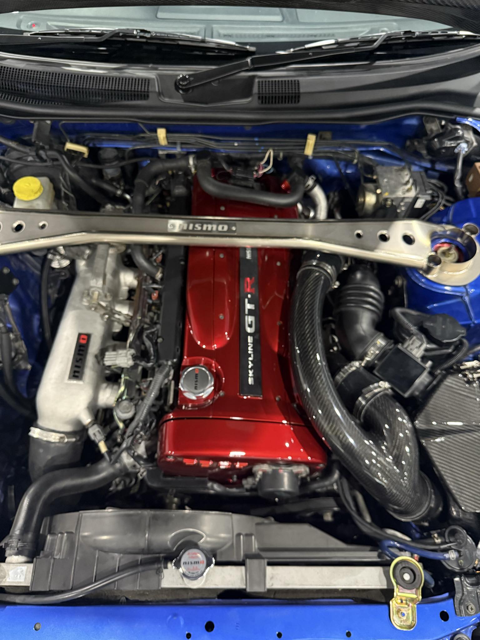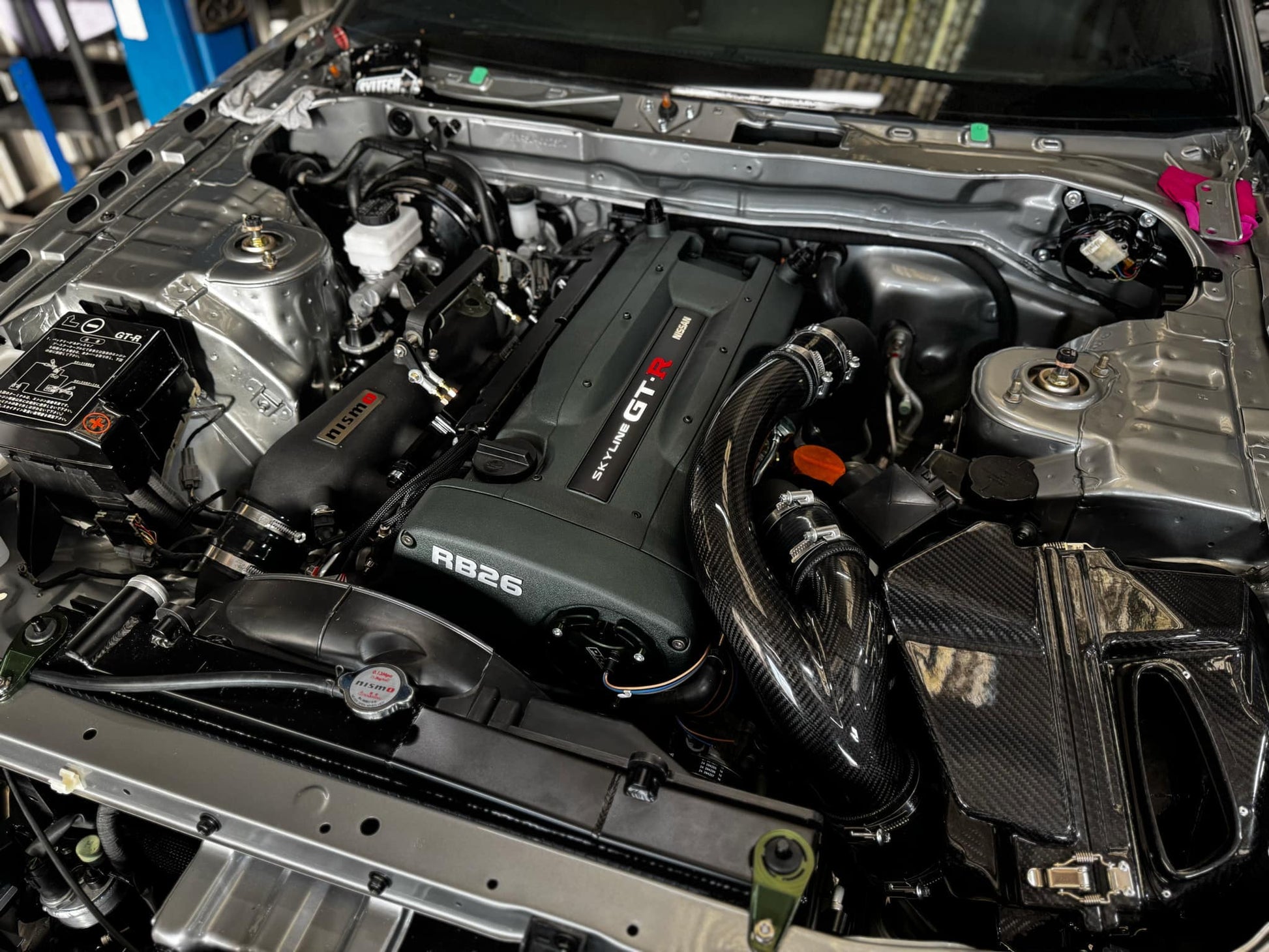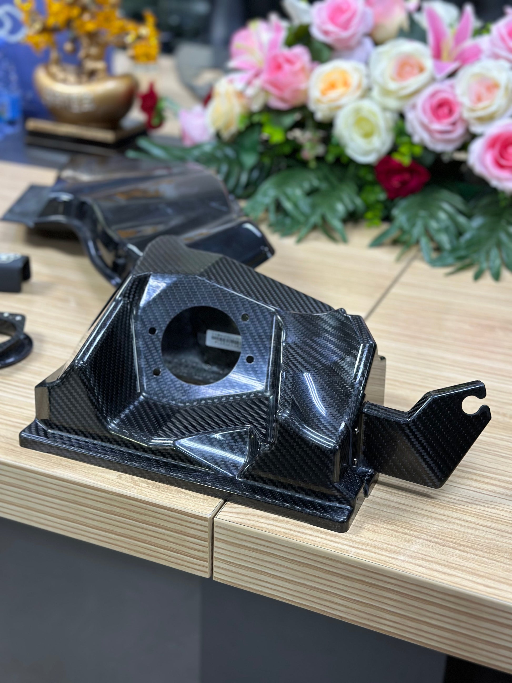 The All Street Carbon Airbox is a direct replacement for the OEM airbox for the BNR34 and the BCNR33. It is designed to improve the performance of the engine by allowing for better air intake. It is completely heat resistant and UV resistant due to the use of prepreg carbon fibre and its unique coating.